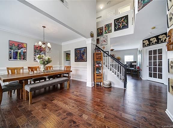A Basement home priced under $400K in Mecklenburg County???? If it is a Home to Entertain or the Home to expand your family in, either or both, this is the one. This beautiful, well maintained 5-bedroom home with a finished basement is the perfect oasis. This home is nestled in the well-kept Stone Crossing community. Home features; Stainless Steel Appliances, Easy maintained 5" easy Hardwood Planks on main floor and basement. Basement has a Theater Design Media area with overhead projector and screen, Surround Sound Speakers, Exercise Room, Storage area, and an Office/Bedroom and a full bath in basement. Upgraded vanity sinks and large closets. Serene outdoor setting with fire pit and large deck covering both main level and basement with rod irons and privacy fenced in backyard.