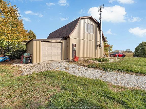 Welcome to 9912 Tecumseh Road, a rare opportunity just outside of Stoney Point! Built in 2002, this spacious garage style property sits on nearly half an acre and features a full bathroom, kitchen, and upper loft area. The large lot offers plenty of room to garden, or simply enjoy the peaceful surroundings. Perfect for first time home buyers looking to get into the market, this property provides versatility, privacy and the chance to build equity while creating your dream space. Don’t miss this opportunity! Buyer is to verify all zoning, HST implications and lot size/dimensions.