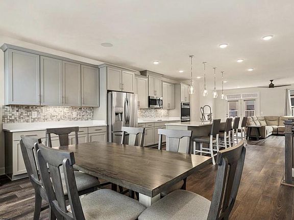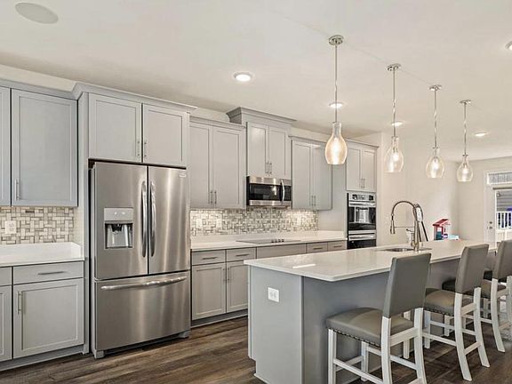 4bed 3.5baths 2 car garage oversized townhome with 2 ft bump out, about 3200sq, 9 ft ceilings throughout out the home creates an open and airy feel. One of the largest models, the main floor boasts an expansive island as the main focal point while complimenting the refreshing light grey shaker-style cabinets, backsplash, pendant lighting, and stainless steel appliances. Beautiful wide plank wood floors are along the stairs, the entire main and lower level. The open floor plan includes a living room that has glass doors leading to the deck- perfect for indoor and outdoor entertaining! Upstairs the primary bedroom has a large walk-in closet and ensuite bath. Lower level has additional 4th bedroom, full bath, recreation room, and walk-out to backyard.