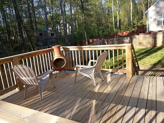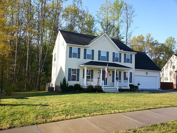 Beautiful Home with Country Porch on beautiful wooded private lot is waiting for you. Formal Living and Dining Rooms. Foyer and Dining Room include Oak Flooring.The Great Room is spacious and is open to the Living & Kitchen area. The large kitchen has an island, cabinets extending to the ceiling. Beautiful Tile Backslash. Stainless Smooth top Range, Microwave, Dishwasher and disposal. The Master Bedroom is spacious and includes a walk in closet, master bath, and sitting area. The Master Bathroom has separate shower and tub. Also features double vanities. The house includes 4 bedrooms, 2.5 baths. The other bedrooms are of large size and all have very nice sized closets. Extra Paved Parking Space. 2 Car Garage. Other features include rear privacy fence, deck, and sliding doors from kitchen to deck space overlooking quite wooded area. This neighborhood features sidewalks!