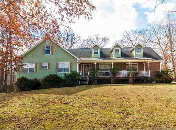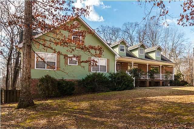 Welcome to Harrison TN. Check out this spacious home with plenty of updates situated on 1.4 quiet acres in Harrison with community access to the lake. Custom built for the original owner this home welcomes you with a huge, covered rocking-chair front Porch. Step inside the home and see the Living Room and formal Dining Room with chair rail molding. Next is a Kitchen with an island, big pantry, hardwood floors, a Jenn-Air flat top downdraft range, and a large dining area open to the Den with a gas-log fireplace and hardwood floors. On one side of the Kitchen is a sizable Laundry with access to the Deck and a sink, and an oversized two-car Garage on the other side. Down the hall are two bedrooms connected by Jack and Jill Bathroom, plus the Master Suite with a walk-in closet, another closet,