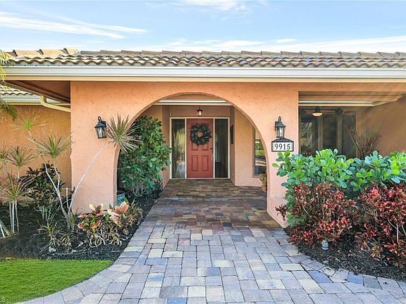 Welcome to Spanish Wells Golf & Country Club where low HOA fees and Golf opportunities live. This is a must see spacious L-Shaped ranch style home with abundant outdoor spaces, a huge covered lanai and a beautiful sparkling heated saltwater swimming pool. This home features ceramic tile and wood floors throughout the living areas, vaulted ceiling in the family room with built-in TV console and bar area, formal dining room and sunken living room with a huge pocketing slider that leads to the spacious private pool area. The owners have added a large paver driveway plus a circular driveway offering tons of parking. Many recent updates throughout. Hidden in the beachy town of Bonita Springs is Southwest Florida's best-kept secret. Spanish Wells Golf & Country Club optional membership provides a fun and active lifestyle. With 27-Hole Championship Golf Course, 32,000 sq. ft. Clubhouse, 3 Har-Tru Tennis Courts, 3 Har-Tru Bocce Courts, 4 Pickleball Courts, Fitness Center & Fitness Classes, Distinctive Dining with their renowned Chef, Entertaining Member Events, Relaxing Heated Tropical Pool, Aqua Range & Chipping Area and 2 Putting Green Areas. Fantastic location close to shopping, dining and just 3 miles to the white sand beaches and Gulf of Mexico.