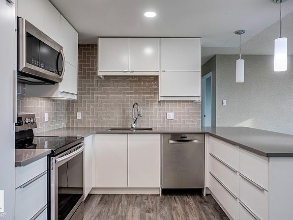 Fully renovated, stylish, and ready for you to move in! This 2-bed, 2-bath condo sits high on the second-from-top floor with sweeping river valley views, including the High Level Bridge, Legislature grounds and downtown. The location is perfect- you’re just steps from the LRT, Victoria Park, the river valley, U of A, MacEwan, shopping, dining, nightlife, and more. The open-concept layout separates the bedrooms for maximum privacy with flexible living space in the main area. The primary bedroom features a 4-piece ensuite, while a second bedroom and full bath round things out. Laundry is one floor down, though in-suite laundry can be installed with board approval, and the condo has the perfect spot to add it! Heated underground parking keeps your car cozy year-round, and condo fees include all utilities except electricity- even a car wash and shared outdoor space which is currently being re-done! This is easy, upgraded city living—move in and enjoy the best of Edmonton right outside your door.