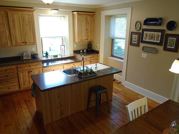 Vintage Americana, circa 1875. Three Story Greek Revival Stone Farm House on 4 acres! Once a stage coach stop, now a beautifully refurbished home in excellent care. The details of yesteryear include deep window sills, open stairways, wide plank flooring. Quaint setting in the Dunlap Hollow Valley. Charming kitchen, beautiful master suite with arched windows, comfy lower level w exposed stairway. Newer garage/shed, park style lawn, shade trees & fabulous future studio building! Your private retreat!