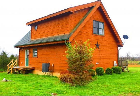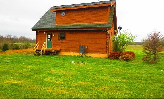 Charming 2 BR, 2 BA log sided home situated on 6.47 AC. A cozy interior coupled w/ rich hand-hewn wood paneling & hardwood floors makes this perfect for those who love bringing the outdoors inside. Additional features include cathedral ceilings, open floor plan, loft, private second floor master suite, full WO bsmt, large deck & beautiful wooded view. Needs a few finishing touches. Old tobacco barn could be used to keep lawn equip out of weather. Just 10 min to Belterra Casino.
