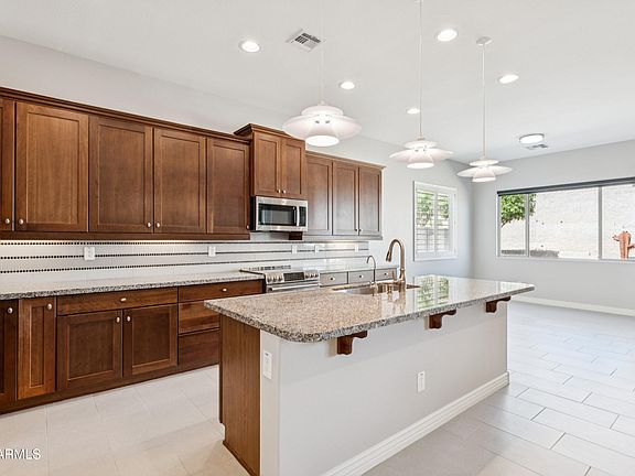 Enjoy living in this FORMER MODEL HOME in the highly desired Northlands Community featuring an Open Split Great Room Floorplan w/Premium VIEW LOT, Custom Built-ins, Lots of Designer Touches, 4 Beds +DEN/Flex Room (or 5th Bed) +3 Full Baths, Kitchen w/Island Breakfast Bar, Pendant Lighting, Tile Backsplash, 42''Cabinetry w/Crown Molding & Light Rail, Granite, Premium Appliances w/Refrigerator, Walk-in Pantry, Recessed LED Lighting, Shutters, Neutral Tile Flooring, 8ft Doors, 10ft Ceilings, Master Suite w/Huge Tile Shower, Walk-in Closet, Washer & Dryer, Water Softener & Drinking Systems, Wifi Garage Opener, OWNED SOLAR SAVINGS, Private Backyard w/Covered Paver Patio, Built-in BBQ & Putting Green - Community features Events, Parks, Hiking Trails, Great Schools, EZ freeway access - MUST SEE! Ask for the special features and upgrade list for all the specific details. This home is very close to everything - shopping, dining, parks, hiking, walking & biking trails, Direct Off-Road Access, Lake Pleasant Amenities, Peoria Sports Complex and Arrowhead Mall and SO MUCH MORE!