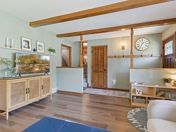 Nordic-design inspired 3-level split tucked on a quiet cul-de-sac in a highly sought-after West Bloomington neighborhood near Nine Mile Creek. Freshly painted throughout with new LVP flooring and carpeting, this home shines with today’s move-in ready style. A standout feature is the all-remodeled kitchen showcasing soft-close maple cabinetry, quartz countertops, Whirlpool stainless steel appliances, and an extra-deep undermount sink. In the lower level, an expansive family room with a fieldstone fireplace offers plenty of room for family gatherings. Three bedrooms on upper level all freshly updated. Primary bedroom boasts high-end wooden louvered closet doors. Two tastefully tiled bathrooms add to this home’s appeal. Newer windows are found throughout most of the house. Living room features a broad bay window and wood beam ceiling. The inviting paver patio—just steps from the kitchen—sets the stage for enjoyable summer evenings with friends or family time outdoor dining. The broad, landscaped yard is fully fenced for your dog (chain link abutting neighbor’s fencing). Yard includes a dedicated planting bed for gardeners, plus an attractive storage shed that is ideal for lawn & gardening equipment. A must-see home - blending modern comfort, updated decor, with soothing contemporary colors. Hurry on this one!