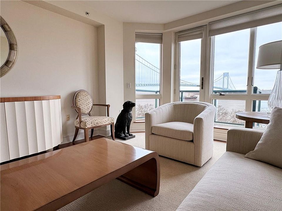 Discover the epitome of luxurious living in this exquisite two-bedroom plus office penthouse condo in the highly sought-after Shore Road address in Bay Ridge. This penthouse residence offers unobstructed, year-round views of the iconic Verrazano Bridge as well as the Manhattan skyline that will take your breath away. No more hunting for parking as this condo includes a deeded garage parking space, and an elevator conveniently connects the garage and street-level lobby directly to the entrance of the penthouse unit ensuring utmost convenience. If the ample storage in the penthouse unit was not enough, included in the sale is a storage room located in the garage level of the building. The well-thought-out floor plan maximizes the panoramic bridge views from your living room, dining room, and chef's kitchen. With ample counter space, abundant cabinets, and even a wine cooler fridge, the kitchen is a dream for those who love to entertain. This condo boasts a quiet and private windowed office, a convenient washer/dryer closet, and two spacious bedrooms, each with its own balcony. The primary bedroom features an en-suite bathroom, and the windowed office, equipped with ample closet space, can easily be used as a third bedroom. Ascend the staircase in the foyer to the second floor, where you'll find a cozy nook for additional storage and access to your private 593-square-foot rooftop oasis. The private roof offers unparalleled Verrazzano Bridge AND Manhattan skyline views and is perfect for hosting dinner parties, lounging in the sun, and enjoying the breathtaking surroundings. Don't miss this opportunity to experience the best that Bay Ridge has to offer. Schedule a viewing today and make this exceptional penthouse condo your new home.