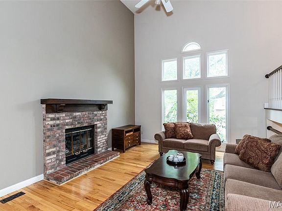 This sought-after Sunset Hills end-unit 1.5 story is a rare find! Inside, a stunning 2-story great room with a wall of windows, gas fireplace, and wood floors that flow into the dining room will wow you! The kitchen opens seamlessly to the dining area and showcases wood floors, stainless steel appliances, warm wood cabinetry, granite countertops, and a breakfast bar. The main floor primary suite features wood floors, two closets (including a walk-in), and a full bath with a double vanity, soaking tub, and separate shower, plus a convenient half bath on the main level. Upstairs offers two additional bedrooms and a full hall bath, while the finished lower level provides a spacious family room, ample storage, and a 2-car garage. Enjoy outdoor living on the deck overlooking the expansive green space. Welcome Home!