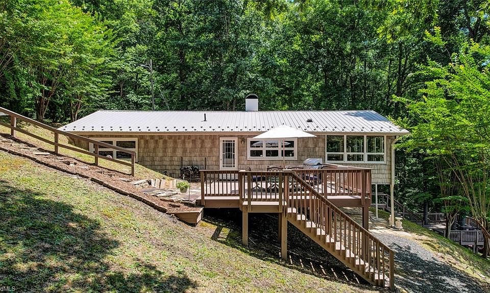 Dreaming of a lake house to call HOME? Convenient to civilization but give you all the feels of being off the grid? Look no further we have the sweet spot situated on FIVE acres with over 400 foot of lake front! Beautiful PRIVATE Old Eagle Falls Lake 14+/- acre lake 30’+/- deep at the deep at the dam filled with bass, brim, crappie, & catfish. Now come on in! VIEW the virtual tour of this beautiful two bedroom cottage that could be easily converted into a three bedroom! (19x11 sunroom NOT included in the heated sq ft) Snuggle in front of the cozy fireplace on rainy/snowy winter days, one wall of windows with nothing but VIEW. Multiple decks to enjoy cookouts, roasting marshmallows or just enjoying the view with a good book. The FP in the basement & patio overlooking the lake is the perfect opportunity for an outdoor kitchen! A great place to walk & enjoy the seasons all within 45 minutes of the Triad. Ample parking for guest & detached garage. FHA-VA-USDA Approved. See agent remarks