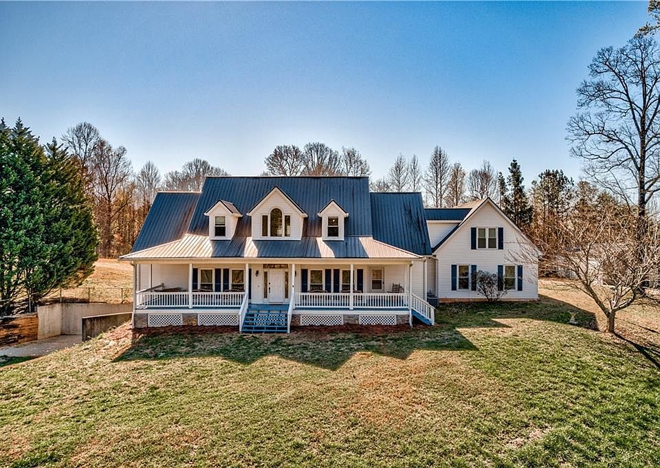 This stunning 5 bedroom, 2.5 bathroom custom-built home sits on a sprawling and private 5-acre lot and offers over 3,000 square feet of living space. As you enter the home, you'll be greeted by an open-concept living area that features high ceilings, hardwood floors, and plenty of natural light. The kitchen is equipped with granite countertops and a large center island that's perfect for entertaining. The adjacent dining area is ideal for family meals or dinner parties. Spacious master on main with ensuite bathroom with a walk-in shower, dual vanities, and a soaking tub. Additional bedroom on the main floor perfect for a nursery or guests. Upstairs you'll find two additional bedrooms, a bonus room with closet and a large living area perfect for teens, playroom or additional tv area. Finished room above the garage can be used as storage, man-cave or an office. Full unfinished basement with side boat door. Covered front and back rocking chair porches, level backyard. Large 30' x 54' detached 3-car garage is stubbed out for a full bathroom with plenty of room for storage, boat or RV parking. Located approximately 2 miles from GA-400, 10 minutes from Lake Lanier boat ramp access, minutes from downtown Dawsonville and 30 minutes from the Chattahoochee National Forest recreational area and trails, this home offers easy access to shopping, dining, and entertainment.