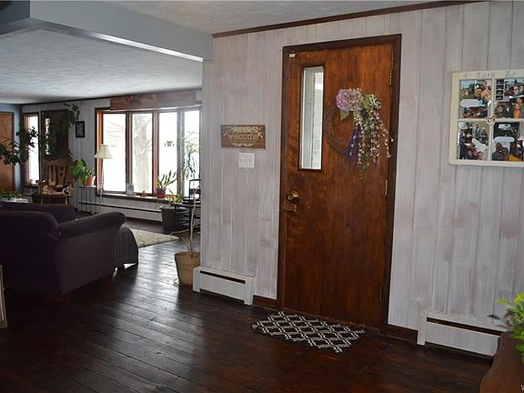 Natural light abounds in this spacious ranch with cozy country kitchen, substantial living room with gas fireplace, large bedrooms, updated bathroom (2014), wood floors throughout, partially finished basement with den/game room, double hot water heaters. Newer sliding glass doors lead to a beautiful backyard with one acre of country living complete with mature trees and shed.