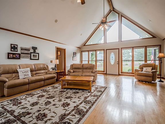 COUNTRY CHARM AND FUNCTIONALITY FINALLY MEET at this custom built, one owner residence..Single level living entrenched w/ natural light from custom windows, soaring ceilings and masonry fireplace brings the wow factor. Easy exterior access w/ massive deck overlooking deep private lot on 1.8 acres w/ fenced area for animals! Super functional kitchen boasting custom oak cabinets, wall oven, cook top, abundance of counter space and dining room seating 8 plus! 1/2 bath for guests and Large secondary rooms w/ jack/jill private bath! PLUS Unfin. bonus room above living room ideal for expansion! Large master BR w/ upgraded en-suite. FINISHED basement w/ media room, possible (4th BR), exterior porch, full bath and more! Community River access! Incredible location!