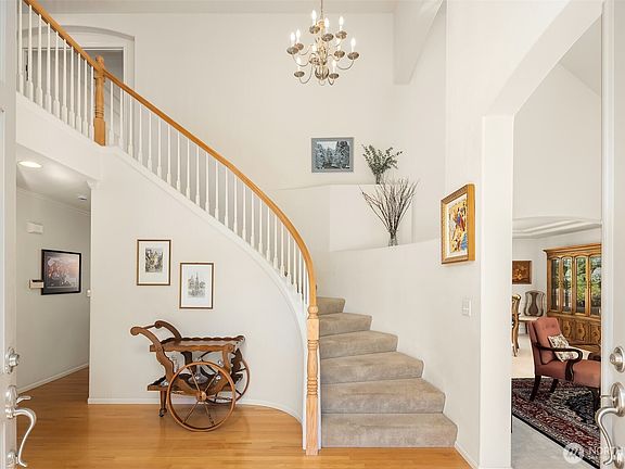 Immaculately maintained 4-bedroom home in Birchwood that blends warmth, style, and function! A dramatic circular staircase and vaulted ceilings set the tone for the open, light-filled layout. The updated gourmet kitchen features granite counters, upgraded appliances, and a large island, opening to the family and living rooms, each with cozy fireplaces. A den offers the perfect office or guest retreat, plus a versatile bonus room for play or fitness. Step outside to a spacious deck and private yard backing to green space—ideal for outdoor dining and entertaining. Nestled in a quiet 7-home cul-de-sac with a presidential roof, new central A/C, updated bathrooms, and an oversized 3-car garage. Pre-inspected for peace of mind.