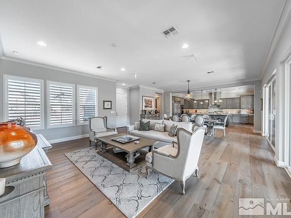 Welcome to your 55+ haven in the heart of So. Reno. Every detail meticulously crafted to create an unparalleled living experience. As you step through the front door, the essence of sophistication envelops you. Expansive great room beckons, bathed in natural light streaming through sliding doors that frame the covered patio & spacious backyard. Gourmet kitchen is a culinary masterpiece, boasting a generously sized island, perfect for culinary creations & casual gatherings., A walk-in pantry ensures your kitchen remains organized, while a wine cooler adds an extra touch of opulence. The kitchen seamlessly integrates with the open floor plan, making it an ideal space for entertaining family and friends. A flex room offers versatility and is accessible through a covered patio. Step outside and experience the seamless blend of indoor and outdoor living as you create an alfresco dining with the barbecue, cook top & Traeger smoker. The primary bedroom is a spa-like retreat, providing a sanctuary of relaxation and comfort. The en-suite bathroom features a spa tub, and spacious shower. 2 ample walk-in closets provide an abundance of storage. The residence exudes elegance with its wood floors, custom Yorktown cabinets, crown molding, and plantation shutters throughout. Your living space extends to a three-car garage, offering both convenience and functionality. Walking distance to the community clubhouse with over 17,000 square feet of indoor recreation including an indoor pool, spa, billiards/game room, weight and cardio room, aerobics and fitness center, formal lounge and more! Lots of established clubs, activities, parties are the epicenter of the Regency community. Outside there are pickle ball courts, bocce ball courts, tennis courts, and access to surrounding bike and walking paths. Access to the Presidio clubhouse & outdoor pool & spa is part of living in Regency. The location is also ideal to ski 25 minutes away, hiking and walking paths around a wildlife preserve, biking trails, fishing and Lake Tahoe and has easy access to freeways, shopping and 15 minutes to the airport.