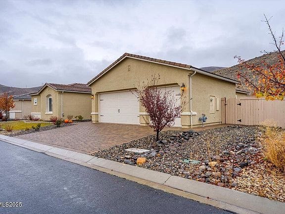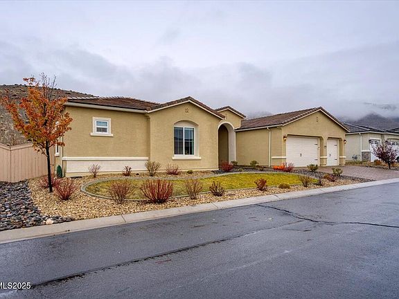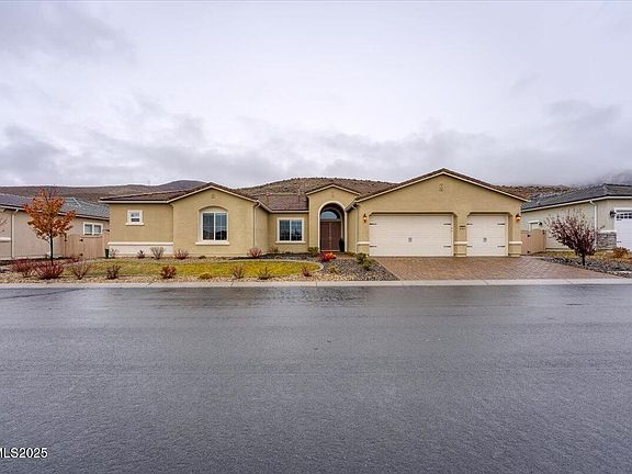 Welcome to the well-situated neighborhood in Saddle Ridge, a distinctive gated community in Reno's Damonte Ranch area in South Reno. With easy access to hiking, biking, and the slopes of Mt. Rose, this home offers a balanced lifestyle just minutes from shopping, dining, and recreation. This expansive 3,189 sq ft single-story home offers four bedrooms and three bathrooms in a thoughtful floor plan. The open-concept layout is centered around a spacious great room that flows into the dining area and kitchen. A stacking sliding glass door creates a fluid indoor-outdoor connection, inviting natural light and fresh air. The private primary suite features generous proportions and spacious en-suite bath, while additional bedrooms are designed for versatility. The backyard presents a blank canvas for outdoor enjoyment with a generous covered patio. Upgrades include wiring for an EV charger, adding convenience for energy-conscious living, and epoxy flooring in the garage. As part of Saddle Ridge, residents enjoy amenities including a pool, fitness center, clubhouse, pickleball and tennis courts, and beautifully maintained walking trails.