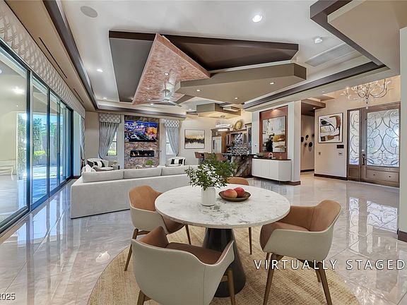Enjoy Luxury Living in your own Private Custom Gated Compound on 1.35 acres. Conveniently located East of the South Point Casino & South of the Las Vegas Strip. Original Owner Builder in 2017 spared no expense with only Top of the Line Finishings. Elegant Single Story with Open Great Room Floorplan with Floor to Ceiling Doors Opening up to Meticulously Manicured Landscaped Yard. The Estate