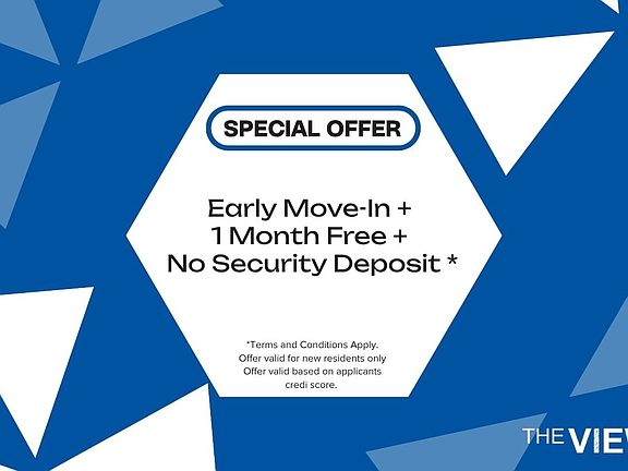 - Early Move-In + 1 Month Rent Free + No Security Deposit - Move in this month and you may qualify for our incentive.