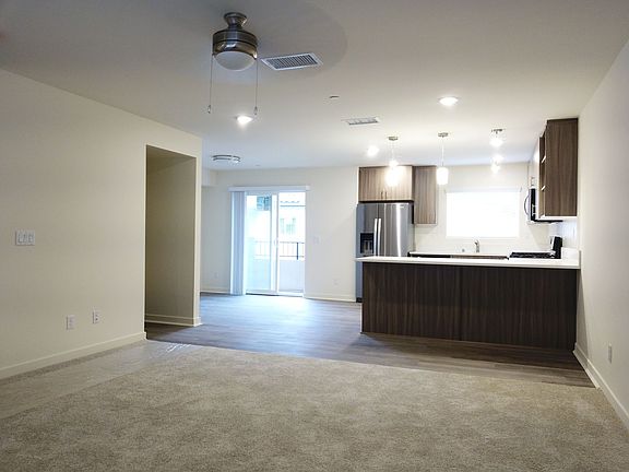 Townhome available in Santee! This tri-level units include 2 bedrooms, 2.5 bathrooms, 1,300 square feet of living space (not including the garage), stainless steel appliances (dishwasher, microwave, fridge/freezer, range), breakfast bar, dining room with balcony access, stacked energy efficient washer and dryer, living room, den/family room, air conditioning, and a 2 car attached garage. Each bedroom has its own full private bath and balcony and the primary suite has a spacious walk-in closet and a dual sink vanity. Finishes in the unit consist of white quartz countertops, natural grey laminate in the kitchen, dining room, and bathrooms, carpet throughout the rest of the unit, and brushed nickel hardware and fixtures.UTILITIES, PETS, & LEASE TERMS: Tenants are responsible for gas (heat, range, dryer), electric (A/C and all other power sources), water, garbage, cable, internet.. *Pets (dogs & cats) allowed upon owner approval, with an additional monthly pet rent ($50/pet), and security deposit ($500 per pet). Some units will not allow pets.*NO smoking and NO satellite dishes*12 month lease required with initial lease signing*