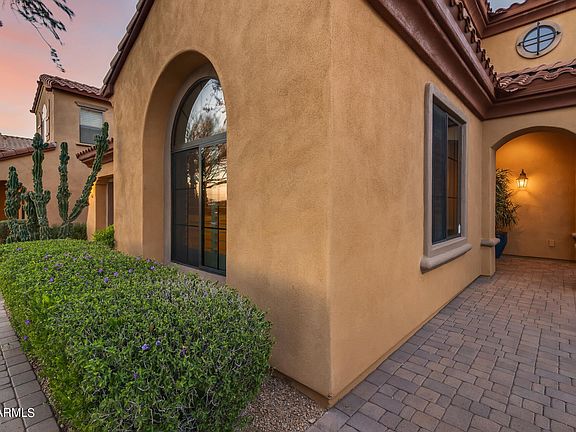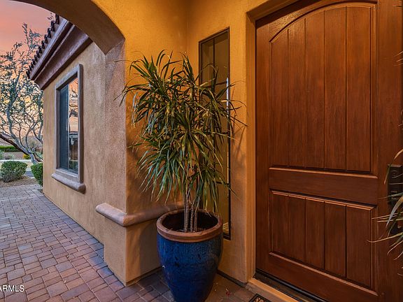 Stunning home on a park-like cul-de-sac, in amenity-filled gated community, nestled in the foothills of the McDowell Mountains. Front door opens up to a spacious entry with access to formal dining room. Beautiful mahogany hardwood flooring leads to kitchen with a breakfast bar, wine fridge, stainless steel appliances, double ovens, gas cooktop, granite countertops & a stone backsplash. Kitchen overlooks spacious living room with fireplace and entertainment area. Large downstairs primary bedroom has private en suite bath with jetted tub, dual sinks and walk in closet. Large upstairs loft provides flex space for additional living room or office as well as two large bedrooms & a full bathroom. Amazing mountain views from backyard boasting sparkling pool, covered patio & built in BBQ.