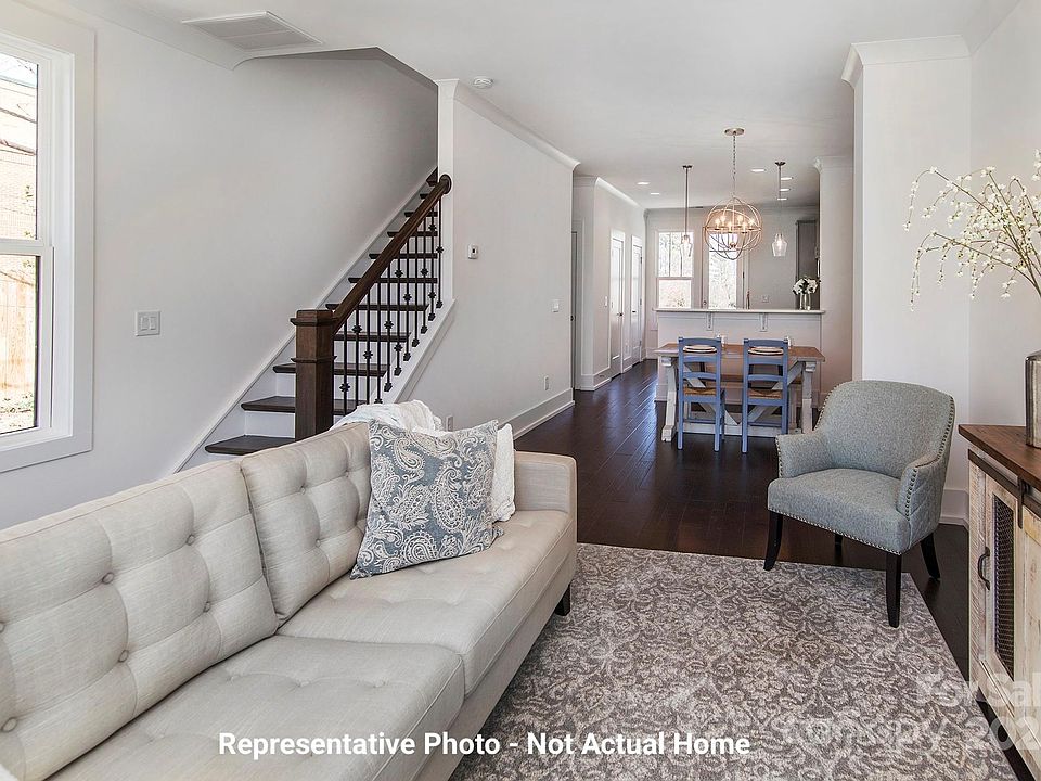 New construction end-unit townhome in Rosedale’s Ansonborough Square. Walkable to Rosedale Commons and Rosedale Nature Park, and just minutes from I-77, I-85, and I-485. The Cambridge floor plan features 9' ceilings and a bright, open main floor with a central island, breakfast bar, dining space, and spacious living room. Upstairs, the primary suite includes dual walk-in closets and a private bath with tiled shower and double vanities. A second bedroom with its own bath and walk-in closet is located down the hall, making it ideal for guests, roommates, or a quiet work-from-home setup. A rear 2-car parking pad offers convenient off-street parking. Under construction now and ready for move-in by December 2025. Backed by a 2-10 Home Warranty and thoughtfully designed with quality finishes—contact us for the full list of included upgrades. Sales office is off-site. Appointment required. Own a brand-new home in an established neighborhood, tour the Cambridge today!