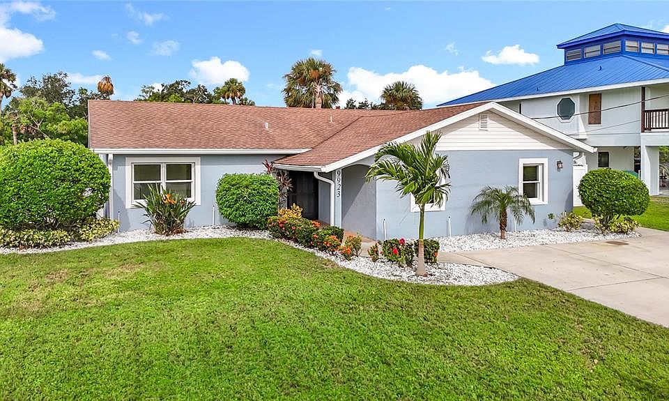 One or more photo(s) has been virtually staged. Welcome to 9923 Bay Drive — a waterfront haven where thoughtful renovations meet practical comforts. This light-filled, single-story home spans nearly 1,800sf, with 4 bedrooms, including an en suite Primary Bedroom and 2 full bathrooms. Fully reimagined inside and out: new soft-close cabinetry; new stainless steel appliances; new HVAC; new water heater; fresh paint; modernized fixtures and fans; 5 1/4" baseboards and shoe moulding; electric fireplace encased in a natural, hand-crafted stone entertainment center; and updated landscaping. Exit your double French doors to a covered screened enclosure overlooking the canal- ready for coastal living. Just steps further is your private dock (with lift ready to re-connect), perfect for boating mornings or sunset reflections over the Alafia River. A huge shed, freshly painted to match, gives you space for gear or hobbies. Nestled close to I-75 and US-41, you get the peace of riverside life without giving up quick access to Tampa and the rest of the region. NO HOA! or deed restrictions here—just the freedom to enjoy your slice of waterfront tranquility with real, modern comforts. Bring your furniture, your artwork and your boat! The rest is a turn-key dream! SELLER OFFERING 2/1 RATE BUYDOWN!