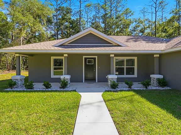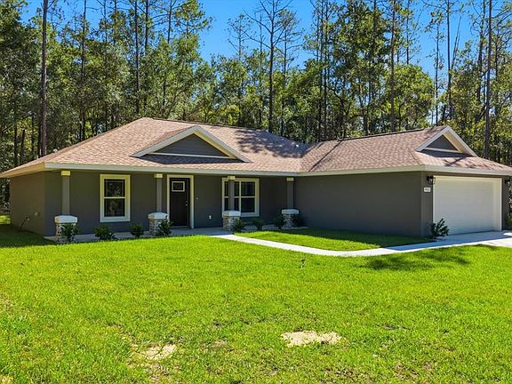 Under Construction. ALMOST FINISHED! Welcome to your brand-new home in Citrus Springs, where quality craftsmanship meets everyday comfort. This thoughtfully designed 3-bedroom, 2-bath residence is newly completed and built with care by Empire Construction. From top to bottom, it offers stylish upgrades, energy efficiency, and a layout that suits today’s lifestyle. As you enter, you’re greeted by tall ceilings and an open floor plan that makes the most of every square foot. The main living area connects effortlessly to the kitchen and dining space, creating a perfect setup for gathering with friends or enjoying quiet evenings at home. The kitchen is beautifully finished with granite counters, soft-close cabinets, and sleek hardware, all brought together by durable luxury vinyl flooring that runs throughout the home. Natural light pours in through energy-efficient windows and a wide sliding glass door, which leads to a covered patio in the backyard. It’s the ideal spot to relax, grill out, or enjoy Florida’s sunshine in peace. The owner’s suite is set apart from the guest rooms for privacy and includes elegant ceiling details, dual sinks, and a tiled walk-in shower. Behind the scenes, this home is just as impressive. Upgraded insulation in both walls and ceiling helps keep utility bills low. Underground electrical service adds to the clean look of the property, and a meter/main combo provides added convenience for future expansion. The exterior is just as inviting, with a classic front porch ready for your rocking chairs. A spacious two-car garage with a side access door offers additional storage and functionality. This home is perfectly positioned within a short drive to local rivers, springs, and parks, not to mention shopping, dining, and new retail centers nearby. It’s the kind of place that gives you room to breathe without being far from the essentials. If you’re looking for something new, well built, and ready to go, this one deserves your attention. Builder incentives and closing cost assistance may be available, reach out for details and come see the difference for yourself. Homes like this don’t stay on the market long.