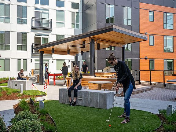 The Junction is a community of 130 homes now leasing in Downtown Bothell. We offer a variety of floorplans that fit all lifestyles! Take your pick from an open one bedroom flat, 1, 2, 3 - bedroom homes including lofts. In addition to our modern apartments, The Junction Apartments offer value packed community amenities like a Rooftop Deck, Chef's Inspired Resident Kitchen, Fitness Center, Entertainment Lounge, and Putting Green! The Junction Apartments are conveniently located on top of Stack 571 Burger, Poquitos Mexican Restaurant, Bay Leaf Bar & Grill, and First Financial Northwest Bank. Additionally, The University of Washington Bothell campus and Cascadia College campus are just a 10-minute walk from The Junction Apartments!