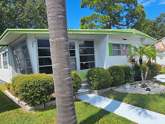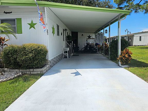 Your Oak Crest backyard is a lush blend of palm trees and tropical plants accented by stately oaks and pines. Oak Crest features a heated swimming pool, Jacuzzi, PETANQUE, driving and putting area, shuffleboard courts, and picnic area with a gas grill. A game room with billiards and library await you in your gorgeous clubhouse and Free WiFi Hot Spot in the Clubhouse/Community Office. If you enjoy an active lifestyle or relaxing on your deck and watching a breathtaking sunset, it is all yours at 55+ Oak Crest/Acorn. Simply minutes away from the world's most beautiful beaches. This community requires one person in the household to be 55 or over while allowing the second person to be 18 or older. Lot rent approximately $960 includes water, sewer, garbage, lawn maintenanceThis and full use of the resort amenities. ---- This stunning 2-bedroom, 2-bathroom home is situated on a well-maintained lot with beautifully landscaped grounds. The property offers a spacious 3-car covered carport with golf cart included, plus a shed equipped with a washer and dryer for added convenience. Step inside this partially furnished home and you'll find a bright, inviting kitchen featuring a newer refrigerator and stove, light wood cabinetry, laminate countertops, a charming window above the sink, and a large pass-through opening to the living room. The expansive open-concept living and dining area is filled with natural light from oversized windows, complemented by light wood flooring, chair rail detailing, and paneled walls with depth and character. Sliding glass doors lead to an enclosed sunroom with full windows-perfect for year-round enjoyment and a sunny retreat for your favorite plants. The split floor plan offers exceptional privacy with two master-style suites. The guest bedroom accommodates a queen bed and includes built-in drawers, a wall closet, and a private en-suite bathroom with a walk-in shower and separate vanity area. On the opposite side, the primary suite features a spacious layout with a built-in drawer set, an extra-large walk-in closet, and direct access to the main bathroom. The bathroom boasts an extended single-sink vanity with ample storage, a medicine cabinet, and another walk-in shower. This home is truly move-in ready, offering comfort, functionality, and plenty of space to enjoy both indoors and outdoors.Also, don't forget to check out the virtual tour to see more of the gorgeous details!! -- CALL CHRIS NOW to place an offer or schedule your private tour! All listing information is deemed reliable but not guaranteed and should be independently verified through personal insection by appropriate professionals. All Florida Mobile Home Sales Inc. cannot guarantee or warrant the accuracy of this information or condition of this property. The buyer assumes full responsibility for obtaining all current rates of lot rent, fees, and pass-on costs. Additionally, the buyer is responsible for obtaining all rules, regulations, pet policies, etc., associated with the community, park, or home from the community/park manager. All Florida Mobile Home Sales Inc is not responsible for quoting of said fees.
