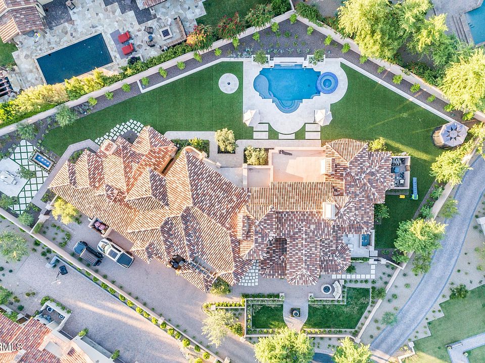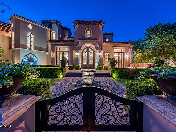 The Arcadia neighborhood in Silverleaf is one of the most sought after locations in the Valley and this home is certainly one not to be missed. Candeleria Design & Fratantoni Luxury Estates thoughtfully crafted this 6,559+ square foot, 6 bedroom + office and 5 bath Spanish Mediterranean stunner, with timeless high quality finishes and design. The great room floor plan seamlessly opens to the private and resort style backyard with mountain views, providing the desired indoor/outdoor lifestyle perfect for family living and entertaining. The separate guest house has a full kitchen along with living room, full bathroom, and 2 bedrooms. This home provides resort style living in every aspect.