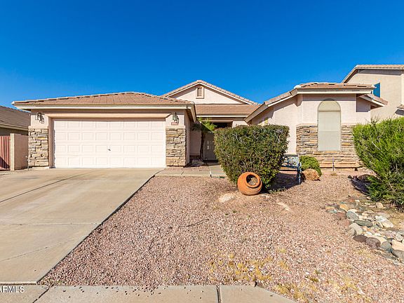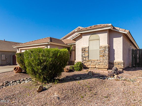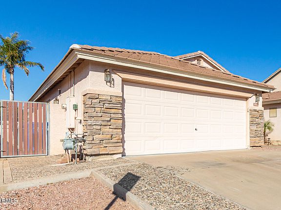 Make yourself at home in this charming 3-bed, 2-bath property w/stone accents and an RV gate/parking in Augusta Ranch! Excellent location minutes away from shopping spots, parks, restaurants, and freeways. Discover an impressive interior featuring tile floors in all the right places, soothing palette throughout, vaulted ceilings, and a great room w/wall niches. The spotless kitchen showcases plenty of cabinetry, granite counters, SS appliances, recessed lighting, a pantry, and a large island w/breakfast bar. Primary bedroom boasts soft carpet, an ensuite w/dual sinks, a soaking tub, and a walk-in closet. Enjoy relaxing with a glass of wine in the cozy backyard offering a covered patio, a Ramada, a shed, and a refreshing pool! Don't miss it. This deal won't last long!