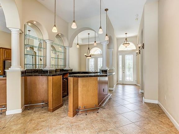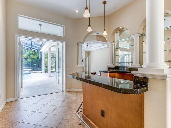 Relax around the pool at this exceptional home at gated Mission Inn Resort and Club. Custom home has new wood floors and granite throughout. This very open floor plan features the kitchen open to the great room. The spacious formal dining room has beautiful French doors that open to the front of the home to the patio. The second and third bedroom with bath are separated from the master in the split plan home. An elegant sit down wet bar features glass shelving and mirrored walls. The master bedroom has two walk in closets. Both garden bath and shower plus double sinks are featured. The master has doors opening to the pool area. The home has two outdoor covered sitting areas. One is off the bonus room/ office/ study and the other off the master suite. A 3rd bath is perfect as a pool bath and adjoins the bonus room. The garage has been extended by four feet should you like to have a golf cart. An over sized yard backs to a treed preserve. Enjoy the lifestyle at Mission Inn featuring 2 championship golf courses, har tru tennis courts, marina on the Harris Chain of Lakes, fitness center and 3 fine restaurants. A must see home! Only 45 minutes to Orlando airport and attractions. Buyer to become either social or golf member to Mission Inn Resort and Club with the purchase of this home. PLEASE NOTE: THE PRICE HAS BEEN REDUCED.