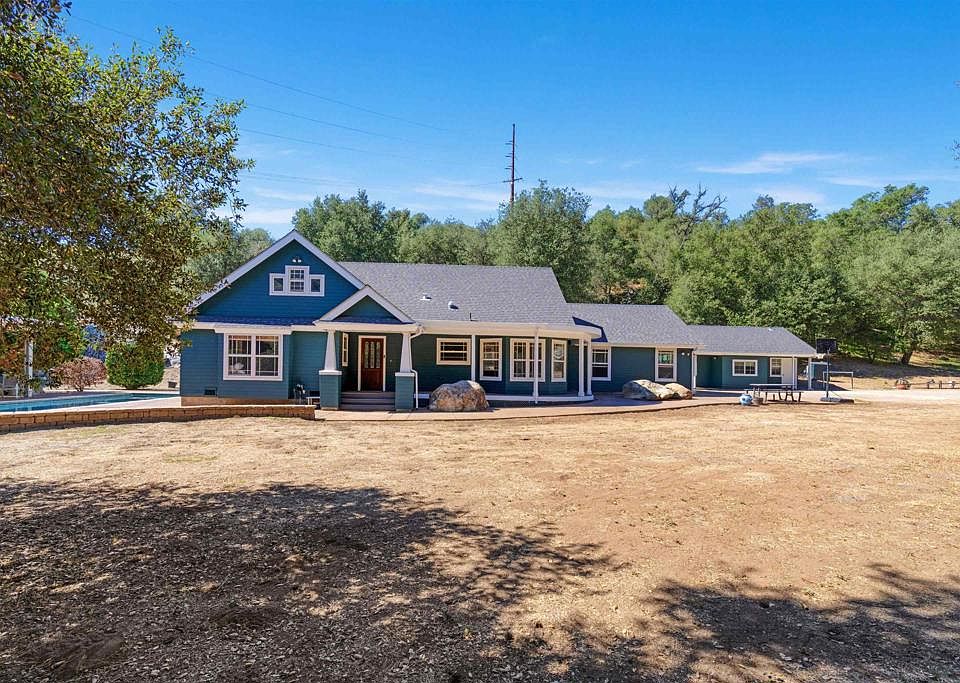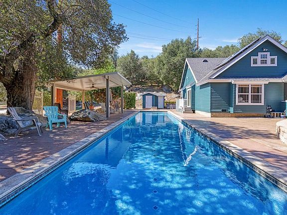 Escape to your own private sanctuary with this beautifully maintained country retreat set on 8.52 acres of flat, usable land dotted with mature oak trees. The home has recently been refreshed with new exterior paint, this property combines rustic charm with modern amenities. A detached ADU with a full kitchen and full bath creates the perfect guest house, rental, or multigenerational living option. The home has a well maintained, attached garage with brand new epoxy flooring, shelving and also comes with a detached garage which offers abundant storage or workshop potential, while the property’s well and septic system provide self-sufficiency. Enjoy endless outdoor living with a sparkling pool featuring a retractable cover, an outdoor bathroom and an inviting exterior fireplace. There is also a dedicated RV pad for guests or toys. PAID solar power helps keep utility costs low. A portion of the lot extends across the street, offering a fenced acea ideal for animals, an additional dwelling or endless creative possibilities. Whether you’re seeking a serene weekend escape or a full-time homestead, this property offers space, privacy, and the perfect blend of country living with modern convenience.