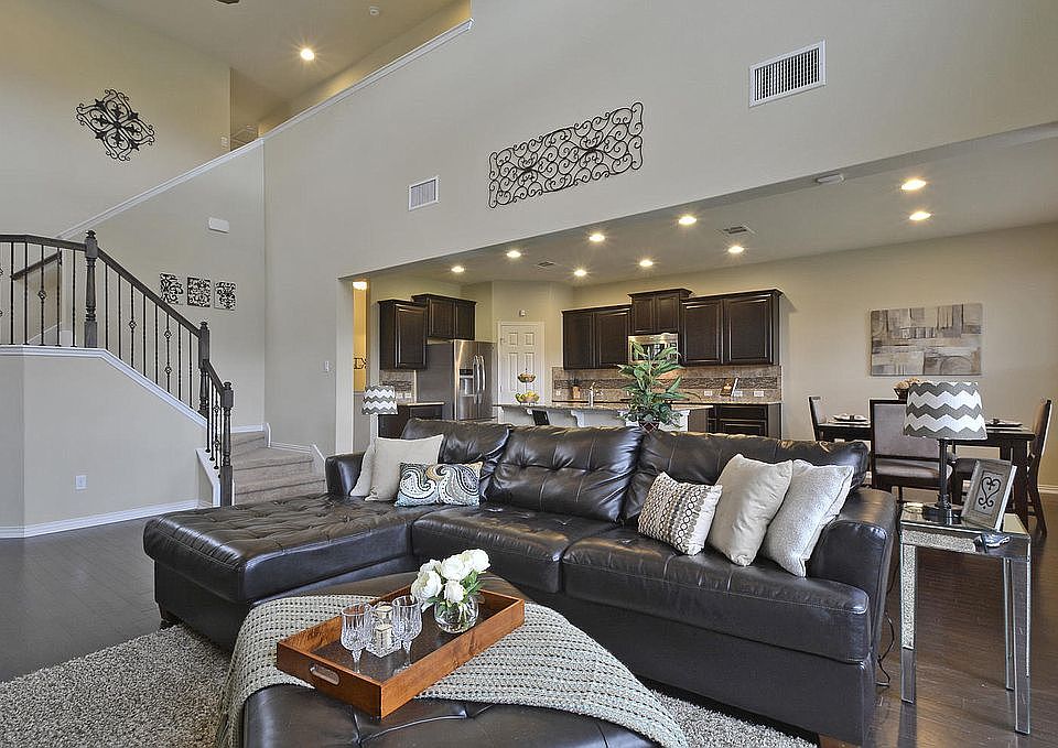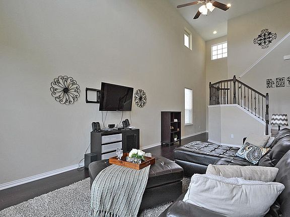 Open floor plan, vaulted ceilings with wood beams, hardwood throughout home including closets. Tile in bathrooms. Two stories. Granite in kitchen. Stainless steel updated appliances. Fenced back yard. 2 car garage.