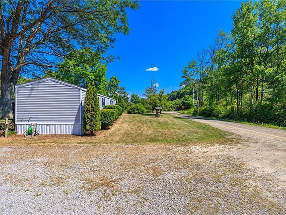 Private park-like setting on nearly 3 acres nestled in the beautiful Finger Lakes Region! Ideally located between Rochester and Corning, this property offers rolling hills, open green space, meandering Reynolds Creek (feeds off of Cohocton River) and a tranquil pond with a floating dock—perfect for nature lovers! Enjoy easy one-level living in this well-maintained manufactured home 1,276 sq ft (from Appraisal report-includes the family room) featuring an open layout with cathedral ceilings, oak kitchen with dining area and all appliances included. Step-down family room with wood stove and hardwood floors creates a cozy gathering space. Owner’s suite includes a spacious ensuite bath with dual sinks. Updated second bath! Features include: updated vinyl plank flooring, skylights, cathedral & vaulted ceiling, 1st floor laundry with front load washer/dryer and outbuilding/garage/storage space add convenience and functionality. A peaceful retreat with endless charm and comfort! Septic inspected/pumped 9/2025. No sign on property at the moment.