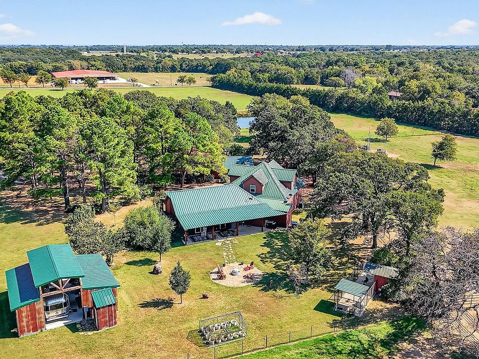 Tucked away on over 28 acres of sandy loam soil, this private and peaceful property is just minutes from downtown Whitesboro on a paved county road. Located in the heart of horse country, the estate offers the best in country living and has been designed for comfort, entertainment, and equestrian life. The property layout could easily accommodate a full training facility while maintaining the privacy of the residence. Everything has been carefully chosen to reflect an authentic ranch style decor. The main home features expansive front and back porches - perfect for quiet mornings or entertaining guests. Inside you'll find soaring vaulted ceilings, tile flooring, 3 fireplaces and an open layout. The living area boasts a stone fireplace, built-in cabinetry, surround sound wiring, and large windows with a view of the back pasture. The custom wet bar services the living space and the back porch. The dining room includes its own fireplace and leads to the loft and the gourmet kitchen - complete with a large eat-at island, granite countertops, Wolf gas range, stainless steel appliances, and a walk-in pantry. The primary suite features its own fireplace and an ensuite bath with a clawfoot tub, stand-alone shower and two oversized walk-in closets. Upstairs, the loft offers an office, a sleeping area, and a full bath with a shower. The studio guest house includes a screened-in porch for added privacy. Outdoor amenities include: 3 entertaining areas including the “party barn”. 2 firepits. Covered RV parking with a dining area and a full “outhouse” bath with crystal chandelier. Barn with 4 interior and 4 exterior stalls, wash rack with hot & cold water, vet stock and an attached workshop with electricity. 40x40 hay barn. Dog kennels, multiple cattle pens with a squeeze chute. Perimeter fenced and cross-fenced into 4 pastures with automatic waterers. Furnishings, equipment, etc. may be negotiable if buyer is interested. Too many features to list—schedule your tour today!