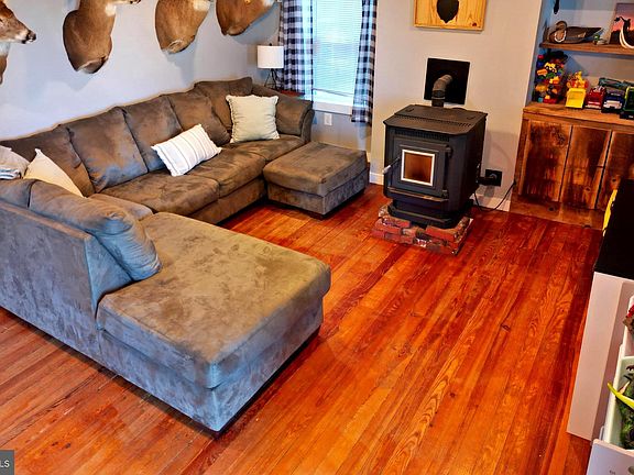 **BACK ON THE MARKET** Property is available again and ready for its new owner! This colonial farmhouse, built in 1910, offers the privacy you desire while retaining much of its original charm alongside modern conveniences. Step through the front door into a living room featuring hardwood flooring and a cozy pellet stove. The spacious central dining room invites ample natural light and the practical wrapped kitchen makes meal prep a breeze! A convenient side entrance leads you into a mudroom that adjoins a full bath and laundry area AND the home boasts a durable metal roof. Upstairs, discover two spacious bedrooms and another full bath featuring both a large Jacuzzi tub and a walk-in shower. Take advantage before it's gone again!