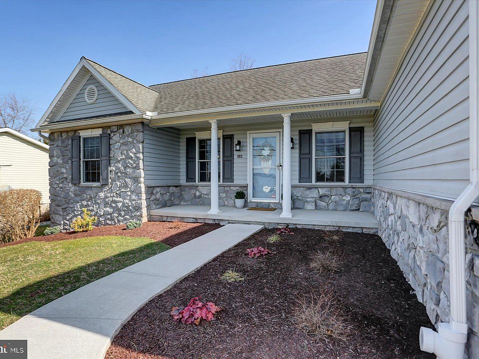 Live the lake life! Skip a stone, take a walk, join a club, catch some fish, swim the backstroke, play tennis, or take your pup to the dog park...this is life at Lake Heritage! 993 Heritage Drive has been updated and shows like a new home! This 3-bedroom, 3 full-bath ranch home will make your lake life even sweeter. The entire main floor has been freshly painted a warm and inviting grey. In the living room, you will immediately appreciate the beautiful hardwood floors and the 3-sided gas fireplace that provides warmth and ambiance. The fireplace can also be enjoyed in the dining area and kitchen, making this floorplan perfect for entertaining! The dining area opens to the covered patio with a new outdoor ceiling fan that beacons you to enjoy your morning coffee or an evening glass of wine. New lighting in the living room, dining room & kitchen creates a sleek, modern look, and the white kitchen cabinets, breakfast bar, double sink, and pantry make meal prep a breeze. The second bedroom, with NEW carpet, and the third bedroom with cordless blinds & a ceiling fan, are separated by the updated bathroom on one side of the house. The spacious owner's suite is situated on the other side of the home for privacy. You'll appreciate the two closets, one of which is a walk-in. The owner's bathroom has been updated with a NEW double sink, NEW mirrors, a NEW soaking tub, NEW lighting, a walk-in shower, and NEW custom-laid imported Italian porcelain tile on the floor and tub surround. This bathroom is like having your own spa! The laundry room, with shelving and a NEW utility sink, is on the main floor. In 2022, the lower level received a high-end finish, with luxury vinyl plank flooring, tons of recessed lights that are zoned (with dimmers) to allow you to control each area, a modern full bath with a walk-in shower, and a screened divider to create separate areas within the space. A sump pump with a pressurized backup was added at that time, as well as a tankless, on-demand hot water system. Moving outside, you'll find a stone firepit in the fenced backyard, as well as four raised garden boxes so you can grow your own food this summer. Every room in this home has been prepared for you to move in and immediately begin enjoying the lake this summer. After all, the kayak launch is just across the street. Bring on summer 2023!