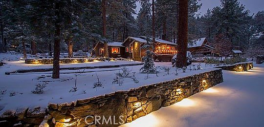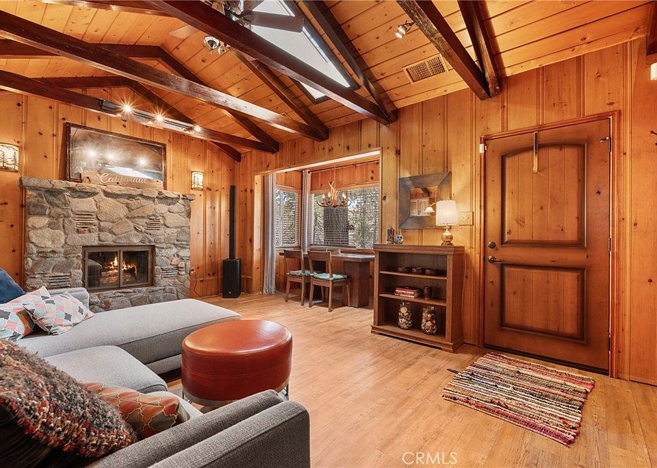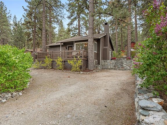 Luxurious and cozy, come fall in love with this turn key mid century cottage in one of the best locations in Wrightwood, across from the historic "Acorn Lodge", this West side bird street stunner has multiple outdoor entertaining and gardening spots, lending itself to both family gatherings and peace and quiet... Walking up, you're warmly greeted by the freshly painted front deck and impressive cottage like front door. Vaulted ceilings, open beams and knotty pine tongue and groove adorn the spacious living room with large picture window looking onto your front deck and lilac filled front yard, with charming wood burning fireplace that really sets the mood. Living room opens to your gorgeous kitchen with designer granite, maple cupboards (and plenty of em), stainless steel appliances, hammered copper farm house sink and eat in kitchen counter bar. Access to your bountiful side yard off of country kitchen dining area. This two bedroom home offers a large master suite as well, with more vaulted ceilings and open beam effects, coffee bar area, dual copper sink vanity, more luxury granite and maple, walk in shower with river rock floor, modest walk in closet and dual access to the park like yard as well. This versatile cottage has the ability to be split into two separate areas, with dedicated keyed entries, perfect for a bnb option while another unit is occupied full or part time!! Speaking of the yard, you may as well register this lot with the forest service and charge admission!! Its like a park, with drip system throughout, native lilacs and vinca, meticulous native stone work everywhere and fresh mulch. Perfect for parking the car or RV, snow play, BBQ's, horseshoes and so much more. Other upgrades/extras include vinyl dual pane windows, soft water system, forced air central heating, newer flooring throughout, newer top shelf light fixtures (that fit perfectly in the mountain setting) and ceiling fans, matching door hardware, newer roof and brand new hot water heater! Sitting at 6300 feet in elevation and a 10 minute walk to the village, come experience the four seasons in one of Wrightwood's most desired spots!