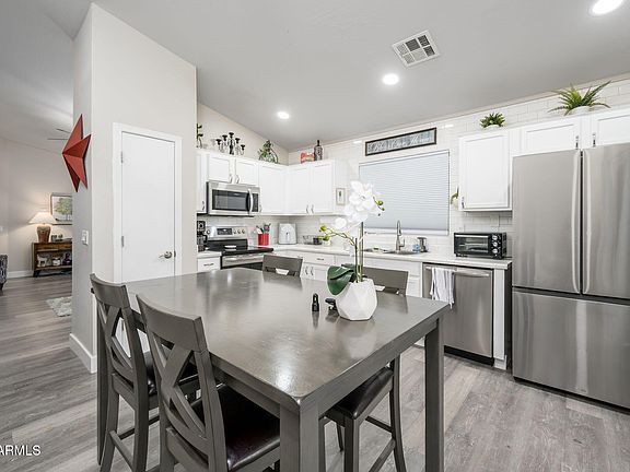 Covered patioCorner lotSpacious backyardTile backsplashVaulted ceilingsStainless steel appliancesNeutral color palate