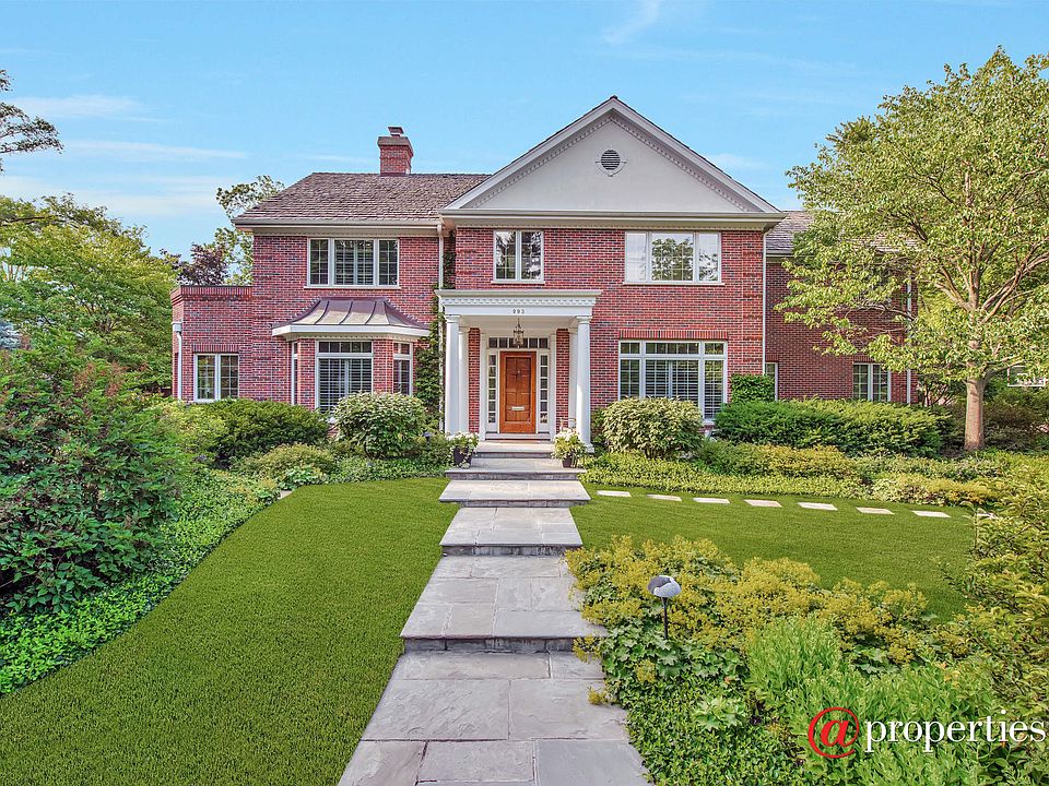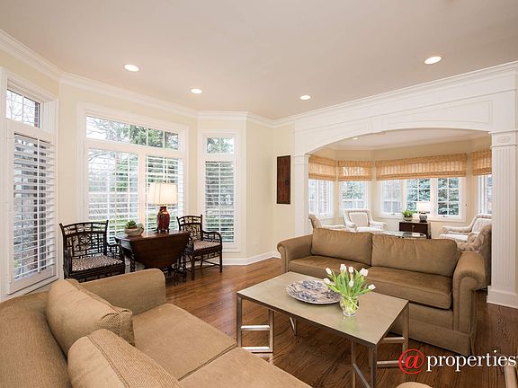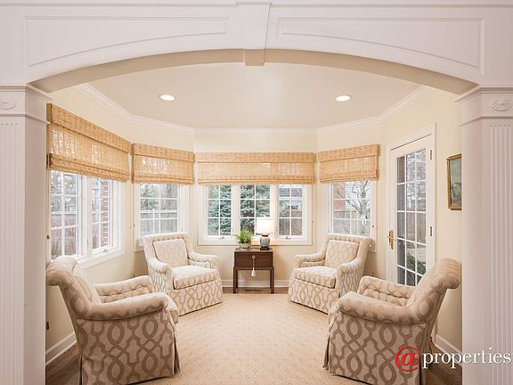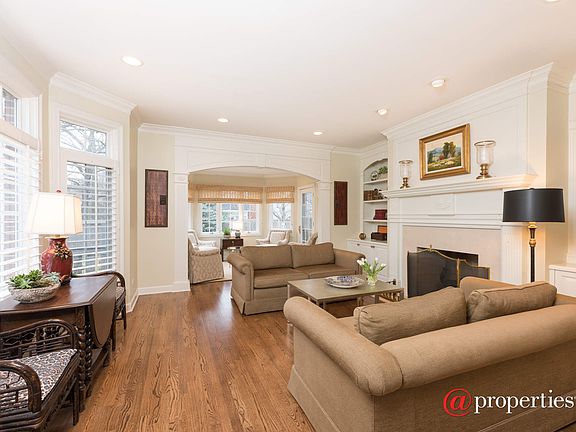 Step in to this beautiful brick Colonial featuring extensive millwork & casing details. Stunning living room opens to light bathed sun room w/door to private patio. Cream/White kitchen has light granite and is opened to the family room with custom built in bookshelves and doors to the patio & garden. Beautiful master suite has a stunning NEW bath w/separate walk in shower, soaking tub, enormous walk in closet & a private roof top deck. Rarely available, 5 potential bedrooms & 3 baths on 2nd floor. There is an expansive rec room in the lower level, 6th bedroom, 5th bath, newer laundry & potential office or work out room. Big plus to this home is the 2 car attached garage. Lot is 66 ft wide not the typical 50 ft wide.