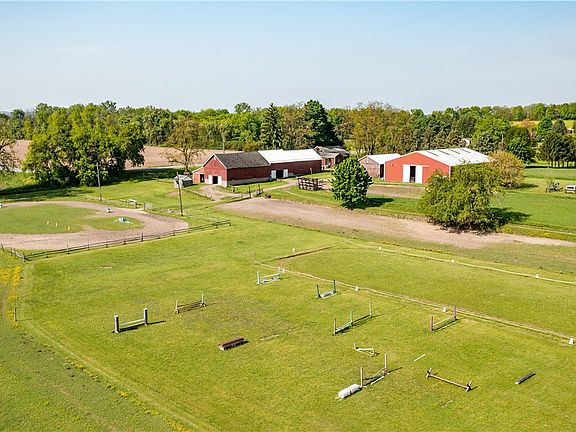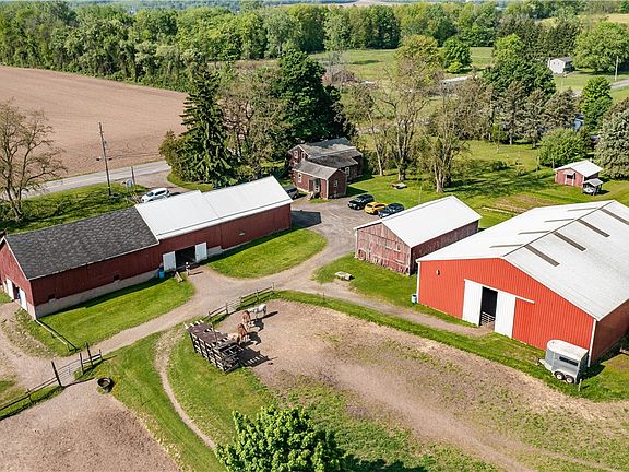 Gorgeous land in Phelps! 69 acres in a quiet, rural area. 50 acres of tillable land, currently a hay field & horse pasture. Hardwoods ready for harvest. Well-kept 23 stall horse barn is a renovated cow barn with the original hand-hewn beams. Ideal for horses, sheep, goats etc. 2nd story hay mow covers entire stall area w/ access to each stall & has room for 2600 square bales of hay/straw. 45’x27’ storage barn for tractors, etc has a new metal roof, doors & concrete floor in 1/3rd of the barn. 60’x80’ indoor ring has 16’ high doors for easy access for machinery, campers, boats, horse trailers. 30’x18’ addition to main barn(2003) with metal roof & concrete floor works well for storing smaller machinery. This mustsee property was most recently a horse farm with lighted outdoor ring, dressage ring, &jump ring. Well maintained trails back up to Ontario Pathways & take you through fields & woods, spectacular view of the entire valley. 3+br 1835 farmhouse w/nicely shaded yard/excellent well/septic/good gravel driveway &lots of parking.