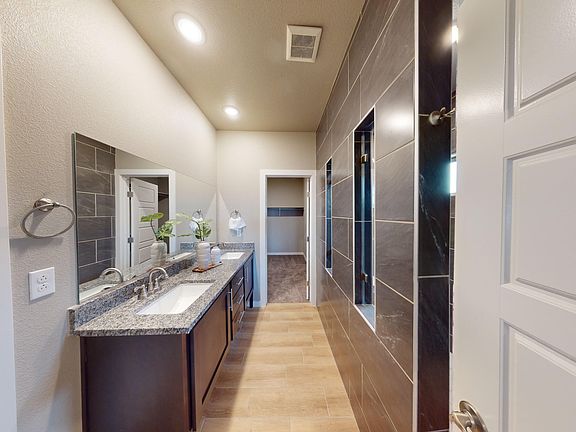 The Idaho (R1424C) is a spacious two-story open-concept home featuring 4 bedrooms, 2.5 baths, and 2,142 sq. ft. of beautifully designed living space. The kitchen showcases granite countertops, rich wood cabinets with crown molding, stainless steel appliances, and a large island that opens to the generous living and dining areas—perfect for entertaining. The primary bedroom is conveniently located downstairs and includes a large walk-in closet and a double-vanity bathroom with a walk-in shower. Upstairs, you'll find three additional bedrooms and a versatile loft for added living space. Additional features include tile flooring in main living areas, double-pane windows, blinds, refrigerated air, utility room, and a double attached garage. Photos are for demonstration purposes only and not of the actual home. Home is under construction. Please visit the Model Home at 901 Indigo Sky in Painted Desert for assistance, open daily 10am-6pm.