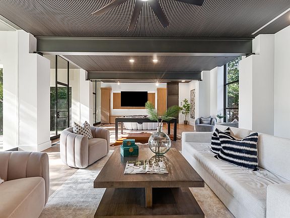 Modern estateNearly one acrePrivate cul-de-sacExpansive backyard oasisBright open spacesResort-style retreatLarge media-game room