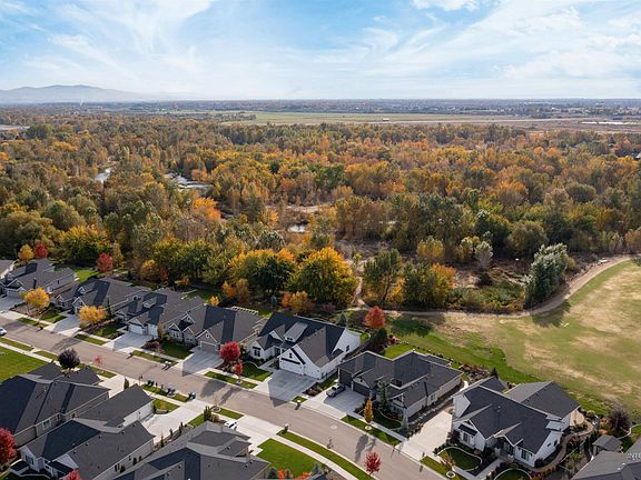 "The Chole Catherine," a highly sought-after resale by James Clyde Homes in the coveted Rivershore section of Heron River Subdivision. Seamlessly blending farmhouse comfort with rustic charm, creating a distinctly inviting atmosphere. Clean lines and striking black metal accents elevate the industrial feel, while cozy farmhouse elements invite you home. Adding drama and character, the vaulted great room features exposed wooden beams, enhanced by gorgeous lighting and a charming fireplace. At the heart of the home, you'll find an exceptional kitchen designed for culinary enthusiasts, equipped with top-of-the-line Thermador appliances, built in refrigerator and a spacious pantry. The luxurious owner's suite serves as a private sanctuary. Complete with a free-standing soaking tub and a spa-like shower, perfect for unwinding. Step outside to a generous covered patio, featuring a custom gas firepit, beautifully landscaped yard with no rear neighbors and a scenic water view just a short walk to the Boise River.