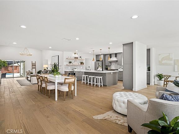 Another beautiful home meticulously remodeled and designed by Tarek and Heather El Moussa from HGTV!! They spent months reimagining this home from top to bottom! No expense was spared on the transformation of this 3 bedroom, 3 bathroom ranch home in the highly coveted North East Downey neighborhood. This home is pristine and the many designer touches are highlighted by all the natural light. Whether you have a growing family or love to entertain, this home is perfect! Open-beam vaulted ceilings, hand selected designer lighting and fixtures, and a wide open floorplan are just some of the custom touches that make this home unlike any other home on the market. The wide plank white oak flooring throughout the home is not only beautiful, but it is easily maintained. The chef's kitchen has been completely redone with all new shaker cabinets, beautiful Quartz counter tops, a large island with seating, a stunning tile backsplash, a single-basin farm sink, and high-end stainless appliances. The primary bedroom and bathroom is a spa like oasis. The bathroom features a new dual vanity, black fixtures, beautiful counter tops and a huge custom tiled shower with bench. The secondary bathrooms are just as impressive with new vanities, high end fixtures, and custom tiled showers. All bedrooms are good sized with ample closet space and boast the same wide plank flooring as the rest of the home. The backyard features a large covered patio, mature landscaping, a sparkling pool! All of this AND new dual pane windows, new 200 amp panel, and all new water and gas lines. Show your most discerning buyers this gorgeously updated rancher, they are sure to fall in love with one of Tarek and Heather's custom designed homes!!