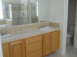 2-story home with 4-bedroom, 3-bathroom, 3-car garage with pool/spa. Energy saving home with solar electric. Home features one bedroom and one full bathroom on the 1st floor. Tile flooring in entry, bathrooms and laundry room. Kitchen features: tile counter tops, oak cabinets, gas stove top grill, two ovens(regular and convection), microwave, pantry and fridge. Laundry room on 1st floor with sink, oak cabinets and washer/dryer provided. Upstairs features: master bedroom, loft area for extra room, jack & gill bathroom with 2-sinks. Master bedroom has large walk-in closet. Master bath
