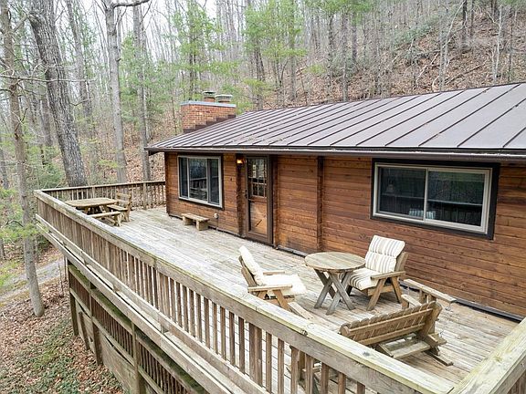 Reconnect with nature: chirping birds, rustling leaves, gently flowing stream water and clean mountain air; this log cabin in the woods is the oasis you've been looking for. With just under an acre of wooded land, directly adjacent to the George Washington National Forest, experience escape from the hustle and bustle in the heart of nature. This single-owner home has been excellently maintained with additions and updates in the last 5 years including a metal roof, Culligan water softener, storm doors, and liners for both chimney flues. The welcoming main floor features a full kitchen and dining area which flows into the living room, accented by the warmth of log walls and ceilings. 3 bedrooms, 2 full bathrooms and a finished basement offer ample space while the wood fireplace with Heatilator circulation, wood stove and propane furnace provide the cozy along with fully-insulated walls. A basement workshop and 10 x 12 storage shed by Valley Structures provide year-round space for storage and projects. Don't miss your chance to see this beautiful property today!