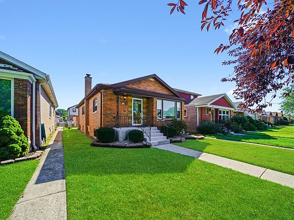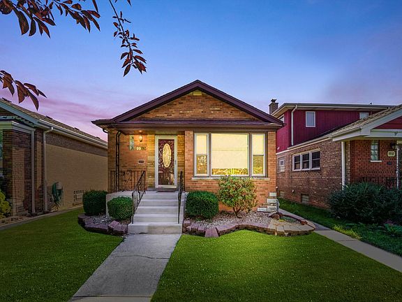 Excellent buy on this oversized all brick bungalow with brick 2 car garage.Brand new refinished hardwood floors in living, dining and all bedrooms.Large living and dining room accented with white baseboards and crown moldings. Buy with confidence as furnace, ac and hot water heater are all under 5 years old. Entire first floor has been freshly painted. All appliances stay. Full unfinished basement with loads of potential. This is a estate sale and being sold as is. Great home at a great price!!!