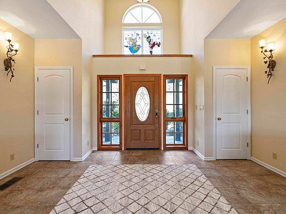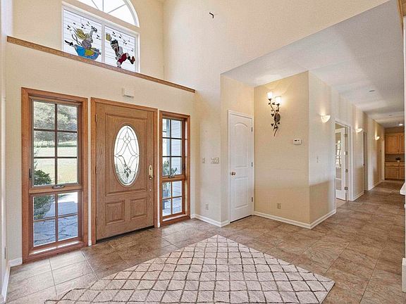 FUNCTIONAL & FORMAL describe this custom single level home in the desirable Springfield Estates. This 4.69 ac setting offers seclusion and privacy as it backs up to a 100+ acre property. An inviting interior begins with the grand entry with dual coat closets and opens right into the living room. Minimal walls in the main living areas create an enjoyable space for dining and entertaining. The kitchen offers a quaint breakfast nook and all the essentials including a pantry, wine storage, breakfast bar and island. The office can be found right off the living room, and the guest rooms down the hall with one room offering private exterior access. Two full bathrooms are off the hall as well as the indoor laundry room complete with a folding table, sink, and ample cabinetry. The master wing offers coffered ceilings, picturesque views, dual walk-in closets and private exterior access. Most all your desired features accompany the bathroom with a jetted tub, walk-in shower, dual sinks and a closeted toilet. Expanded outdoor living is offered from the back deck with both an open and covered area. Experience all 4 seasons here with a light winter dusting of snow to the spring blooms. If you like to tinker, you will find great use of the 3 car finished garage and detached shed. While Springfield Estates is rural, you are only 10 minutes to town and a couple minutes to the airport should travel be essential.
